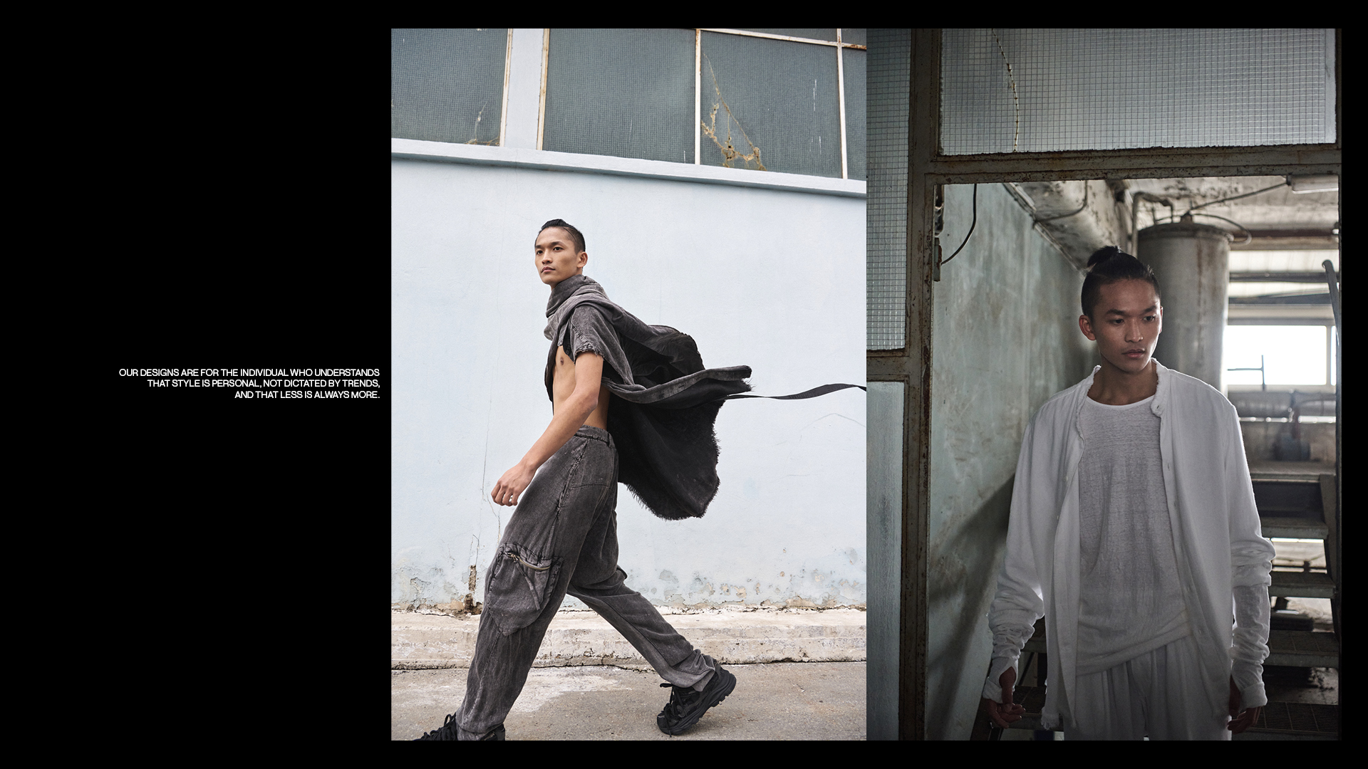 We drape fabric like memory — torn, worn, weathered by truth.
